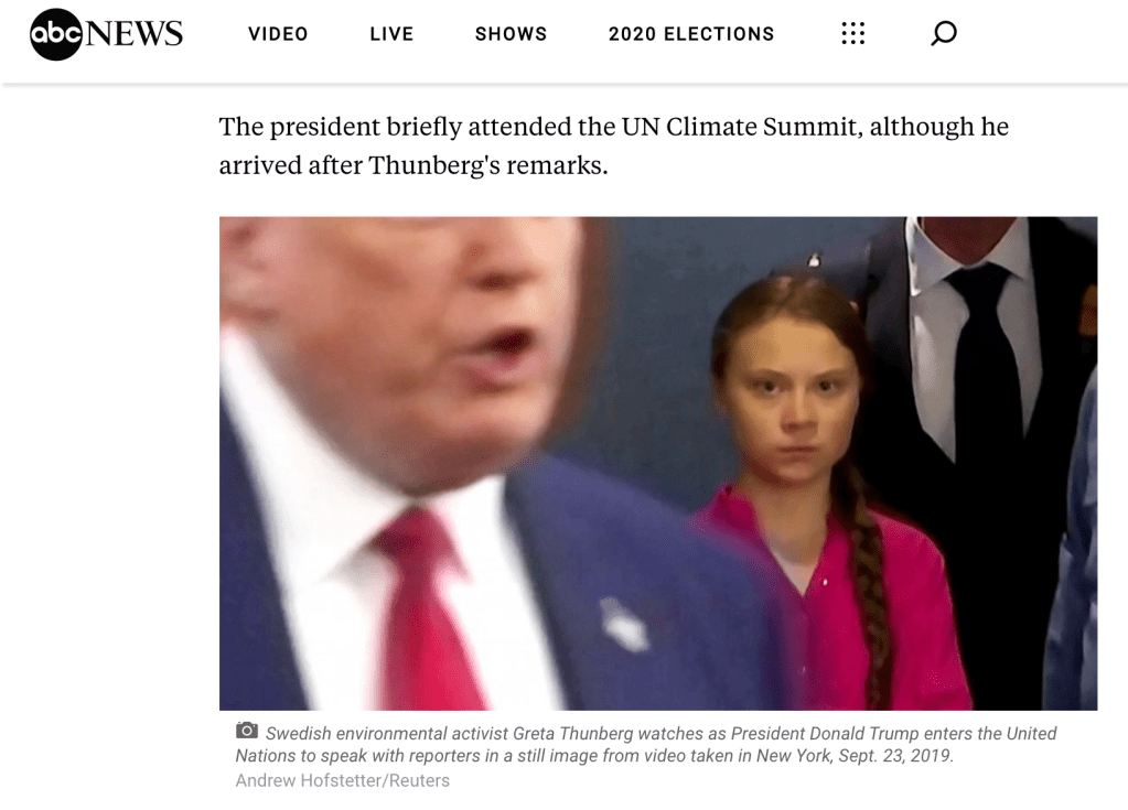 Greta Thunberg na szczycie wedle ABC NEWS.
