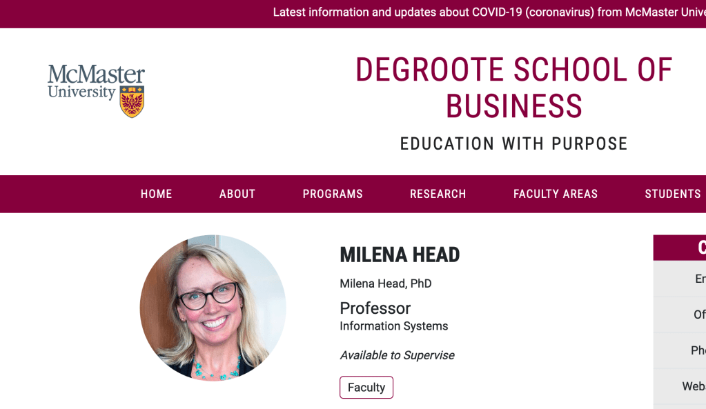 Milena Head jest dyrektorem ds. kształcenia w dziedzinie transformacji cyfrowej w DeGroote School of Business, McMaster University (USA).