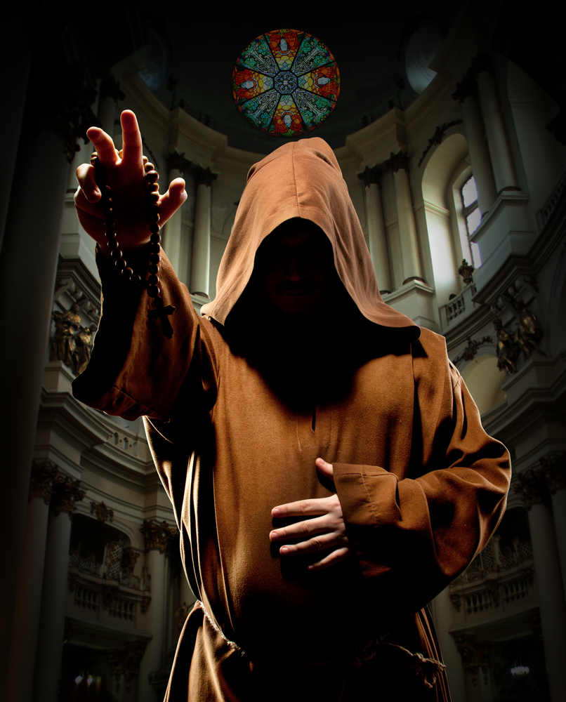 Mnich w kościele (fot. lic. Depositphotos)