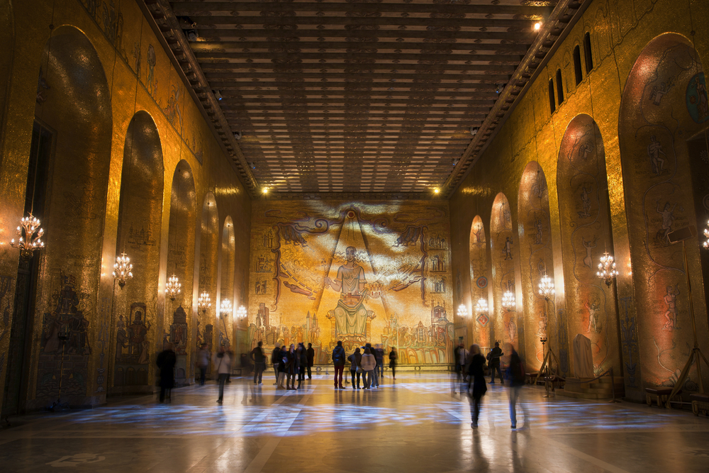 Interior of the Stockholm City Hall, the Golden Hall where the dancing takes place at the nobel prize banquet