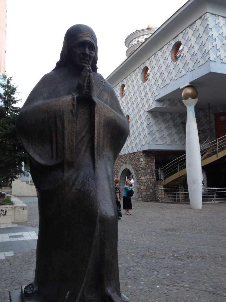SKOPJE, MACEDONIA – MAY 18: Mother Teresa monument in Skopje on May 18, 2013. Mother Teresa monument Humanitarian Worker and Nobel Prize Winner in Skopje, Macedonia.